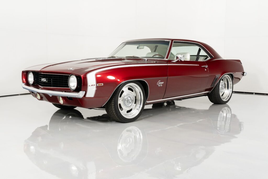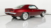 Show-stopping restomod finished in deep Candy Apple Red with pearl white accents. Powered by a modern LS3 V8 with automatic transmission and custom suspension. Features a white leather interior, upgraded sound system, air conditioning, and power accessories. A classic look blended with modern performance and comfort.